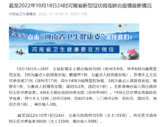 原標(biāo)題:《截至2022年10月18日24時(shí)河南省新型冠狀病毒肺炎疫情最新情況》