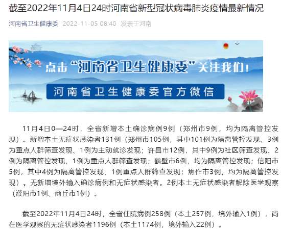 原標題:《截至2022年11月4日24時河南省新型冠狀病毒肺炎疫情最新情況》