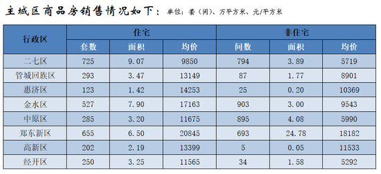 鄭州全市商品房銷售8608套(間),銷售面積102.44萬平方米,銷售均價12304元/平方米;其中商品住宅銷售4961套,銷售面積60.02萬平方米,銷售均價11513元/平方米。非住宅銷售3647套(間),非住宅銷售面積42.42萬平方米,非住宅銷售均價為13423元/平方米。