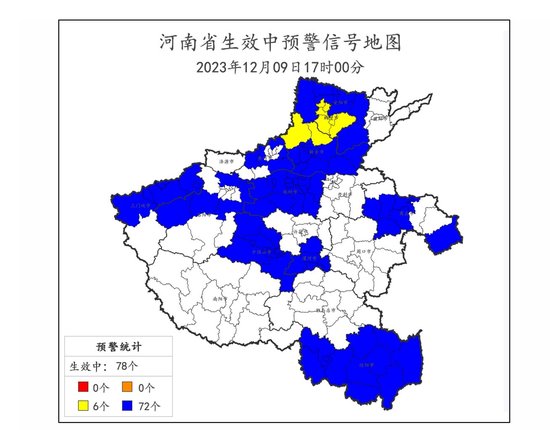 圖2 2023年12月9日17時(shí)河南省生效中的預(yù)警信號(hào)