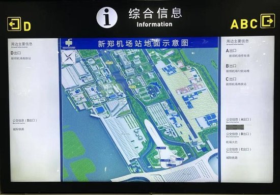 新鄭機(jī)場(chǎng)站位于迎賓大道下方,與鄭州新鄭國(guó)際機(jī)場(chǎng)、城際鐵路新鄭機(jī)場(chǎng)站相聯(lián)通,車站設(shè)置A、B、C、D共4個(gè)出入口,其中A口通向T2航站樓停車場(chǎng)、B口通向T2航站樓負(fù)二層、C口和D口位于城際大廳。