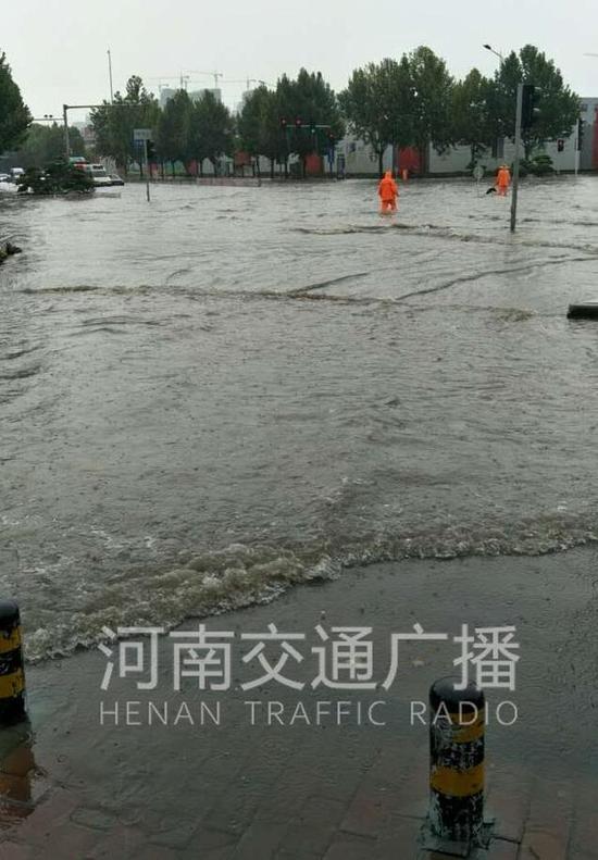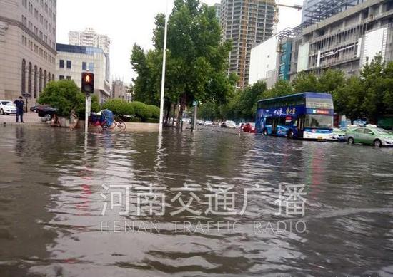 1。中州大道金水路南向北橋下,開始有積水了,導致南北雙向堵車,其中南向北堵到隴海路,北向南排到東風路。