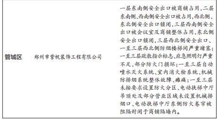 昨日,鄭州市消防支隊對前期檢查中發(fā)現(xiàn)的16家火災隱患單位及其消防違法行為進行曝光,消防部門對于檢查發(fā)現(xiàn)的火災隱患,要求能當場整改的要督促立即整改,不能立即整改的要梳理問題,建立工作臺賬移交所在縣(市、區(qū))政府并通報市級行業(yè)主管部門。