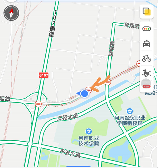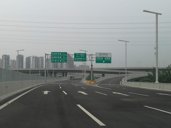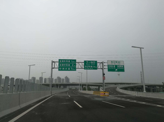 從龍子湖片區往市區方向車輛:可自博學路姚橋路口西北角,由東向西上橋進去北三環東延高架,然后經北三環東三環立交,可進入北三環、東三環、隴海路、中州大道等高架。