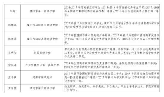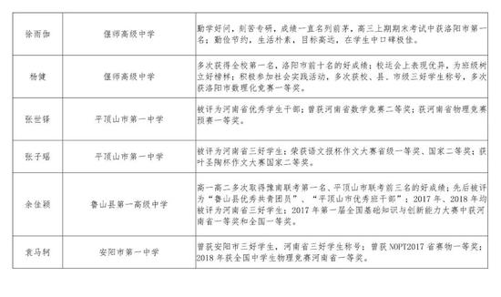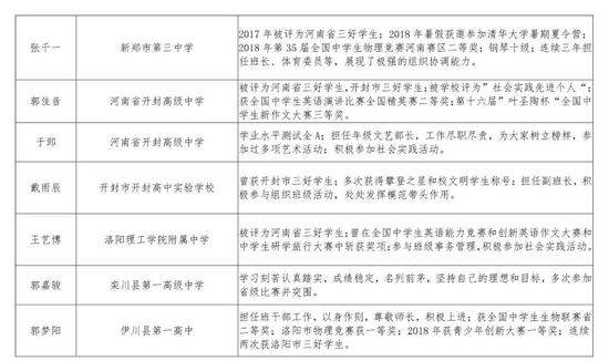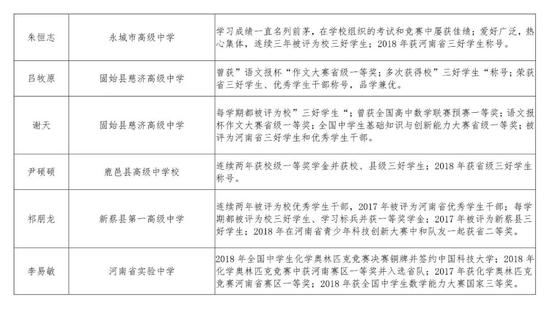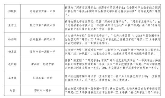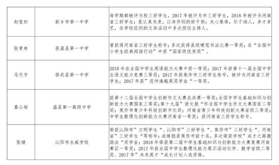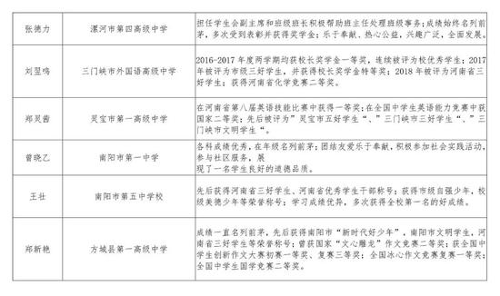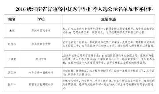 2016級河南省普通高中優秀學生推薦人選公示名單及事跡材料