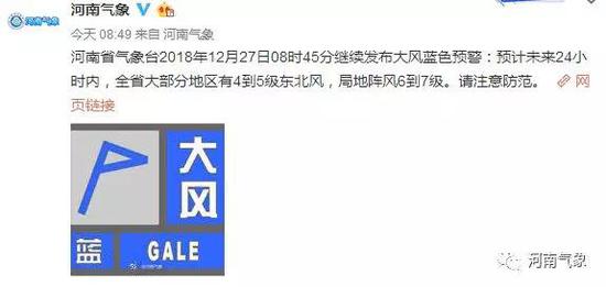 河南省氣象臺08時45分繼續(xù)發(fā)布大風藍色預(yù)警