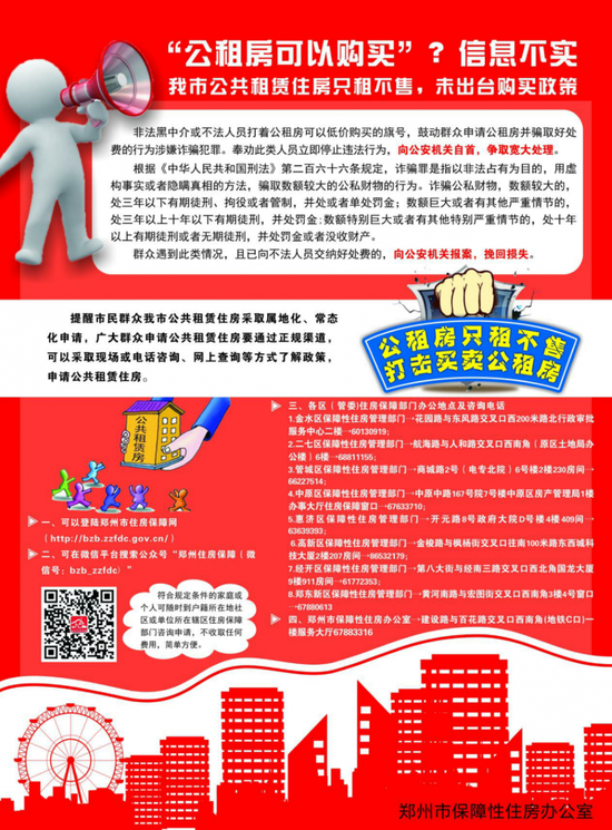 映象網(wǎng)訊(記者 燕子丹 文/圖)12月29日,映象網(wǎng)記者從鄭州市房管局發(fā)布的公共租賃住房消費警示中了解到,公共租賃住房是指由國家提供政策支持、限定建設標準和租金水平,面向符合規(guī)定條件的城鎮(zhèn)中等偏下收入住房困難家庭、新進就業(yè)無房職工和在城鎮(zhèn)穩(wěn)定就業(yè)的外來務工人員出租的保障性住房。