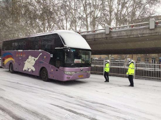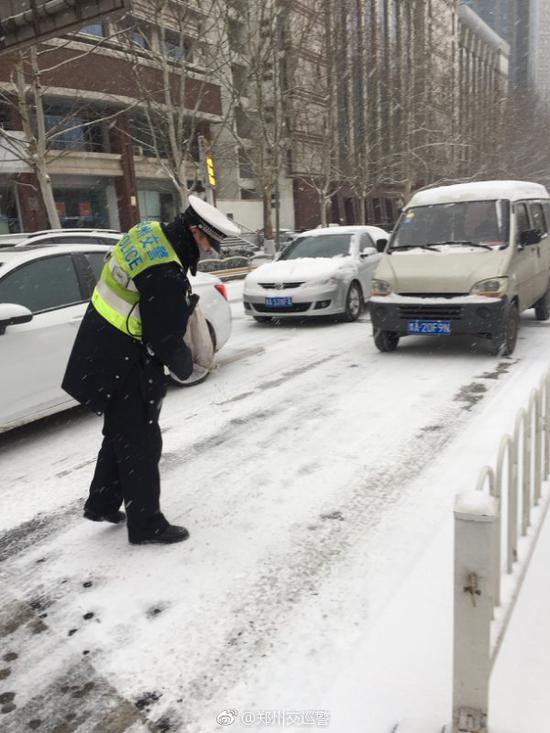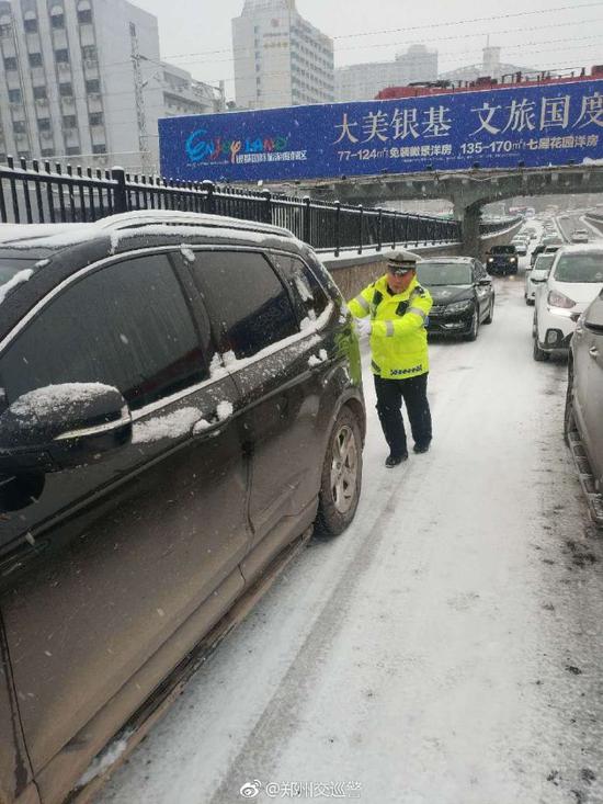 今天白天是本次降雪的主要時段,鄭州交警提醒您要注意防范風雪低溫天氣帶來的積雪、道路結冰、能見度降低等狀況的發生,注意出行安全!平安返程最重要!