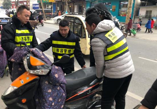 據悉,本著方便群眾、規范管理的原則,當天,南陽新村街道辦事處重點對躍進路與豐樂路交叉口商場周邊、學校周邊非機動車亂停亂放進行集中整治,發現的非機動車亂停放行為及時督促,對車主暫時不在的非機動車、上鎖的電動車、三輪車,執法隊員主動幫助商戶抬起重重的非機動車,一步一停歇的調整位置,沿街商戶被執法隊員的精神所感動,承諾以后主動規范門前亂停亂放的自行車、電動車。