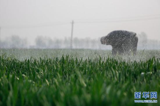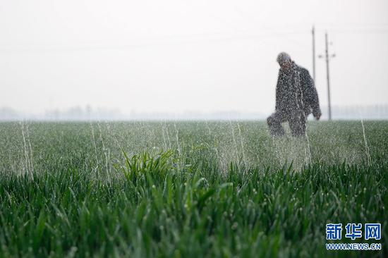 近期,隨著氣溫不斷回升,冬小麥逐漸進入拔節(jié)階段,河南省寶豐縣農民抓住有利時機,加強田間管理,及時灌溉施肥,確保小麥豐收。新華網(wǎng)發(fā)(何五昌 攝)