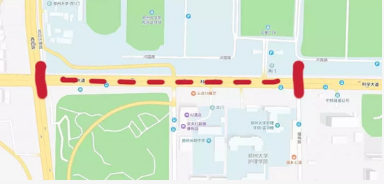 4月11日,記者從鄭州交警支隊(duì)獲悉,目前,根據(jù)施工進(jìn)度要求和施工場(chǎng)地限制,現(xiàn)需對(duì)科學(xué)大道部分路段(臘梅路一西四環(huán))進(jìn)行斷行施工。