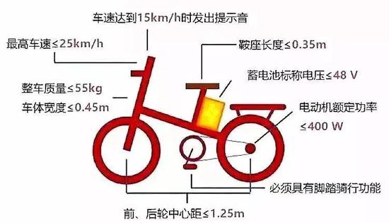 新標(biāo)準(zhǔn)最高車速為25km/h,整車質(zhì)量(含電池)調(diào)整為55kg,電機(jī)功率調(diào)整為400W,必須具有腳踏騎行功能等。