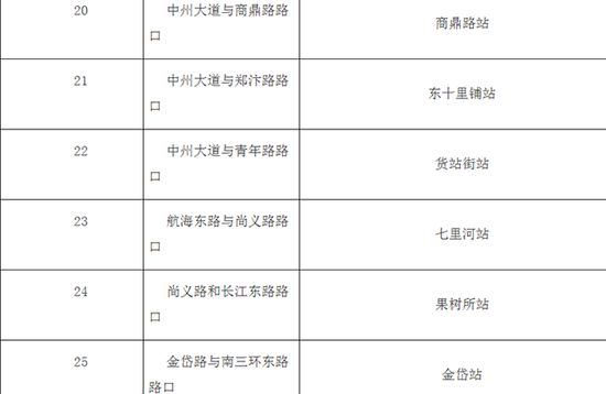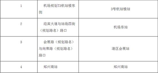 南四環至鄭州南站城郊鐵路(二期)車站擬定站名一覽表