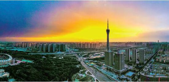6月3日,鄭州天氣驟變,傍晚7時,南部烏云壓頂,西部云朵散去,太陽給天空染上美麗的晚霞,而東部的天空還出現(xiàn)了一點點彩虹。鄭報全媒體記者 馬健 圖