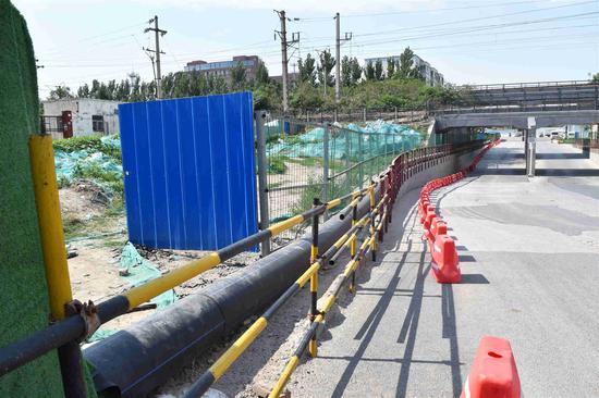 電廠西路污水工程因穿越鐵路,下穿五龍口明溝,且基坑較深,施工難度較大,污水管下穿鐵路施工需要辦理火車慢行手續(xù),為保障主管道施工,鄭州市市政設(shè)施維修建設(shè)有限公司在任務(wù)重、工期短的情況下于5月29日進(jìn)場施工,經(jīng)過前期的實(shí)地調(diào)研和技術(shù)論證,公司決定采取導(dǎo)流措施,通過導(dǎo)流管將上游污水抽排至下游污水管中,以達(dá)到臨時(shí)截污通水的目標(biāo),并于6月30日開始試運(yùn)行。