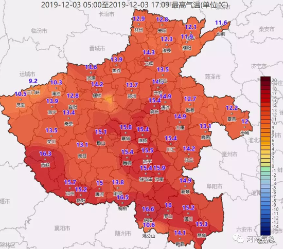 南陽、信陽、平頂山、漯河、駐馬店最高氣溫在14到17度之間