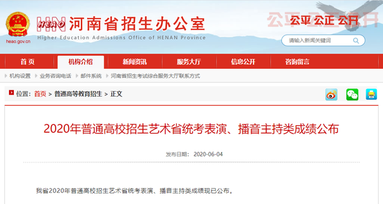 原標題:《河南省2020年高招藝術省統考表演、播音主持類成績公布!》