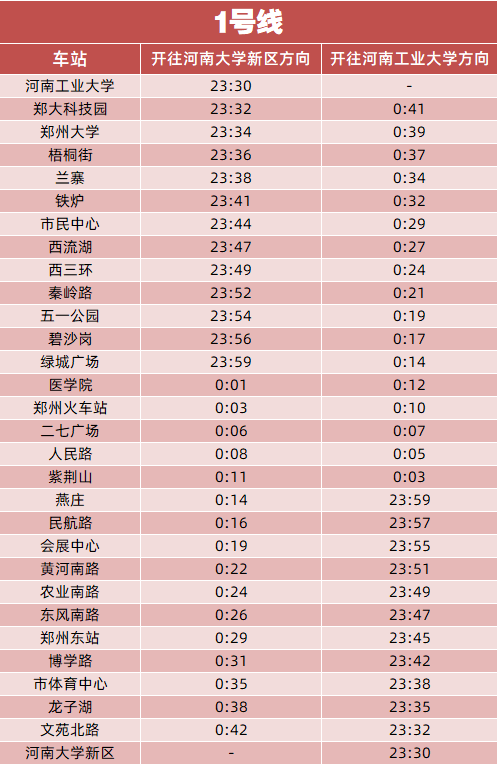 附:延長(zhǎng)運(yùn)營(yíng)期間各站末班車時(shí)間表