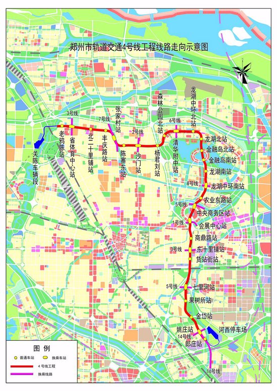 據(jù)了解,4號線起于惠濟區(qū)老鴉陳止于管城區(qū)河西路站,是連接北部片區(qū)、鄭東新區(qū)和南部片區(qū)的南北向骨干線路,線路沿三全路、國基路、龍湖中環(huán)路、如意東路、中州大道、騰飛路、金岱路走行,線路全長29.217km,設(shè)置站點27座,從地圖上看,就是一個倒著寫的“L”。初期運營所需要的24列電客車的調(diào)試以及型式試驗將于10月底前完成。