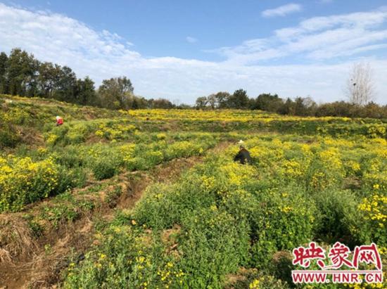從春天搶種花苗,到如今花開遍地,目前藥材種植基地野菊花長(zhǎng)勢(shì)良好,已經(jīng)進(jìn)入集中采摘期。野菊花的豐收正忙引來(lái)了不少附近村民前來(lái)務(wù)工采摘,而當(dāng)?shù)貐s仍急需大量采摘工?!拔覀冋囊熬栈ㄒ砸粔K五一斤賣給村里,快手一天就能摘五六十斤,村里還給我們管午飯呢?!眳切闳A說(shuō)。