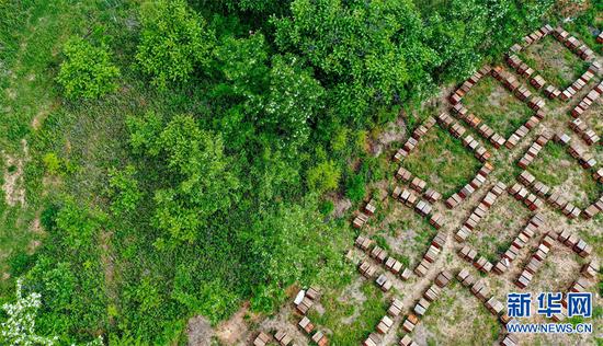 5月9日,河南省三門峽市盧氏縣沙河鄉張家村,一名蜂農正在“釀造”自己的甜蜜生活。