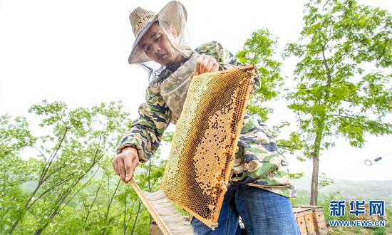 盧氏縣地處豫西深山區,是國家優質洋槐蜜生產基地。近年來,當地在持續加強生態保護的同時,大力發展蜂蜜產業,年產優質蜂蜜3000噸,產值7000余萬元,帶動眾多群眾走上甜蜜致富路。新華網發(聶金鋒 李東陽 攝)