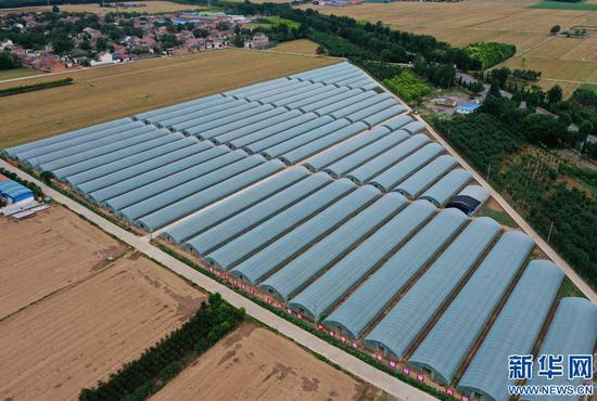 這是6月17日拍攝的河南省焦作市溫縣番田鎮興田種植專業合作社大棚種植基地(無人機照片)。