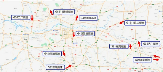 (中秋假期鄭州周邊易擁堵收費站示意圖)
