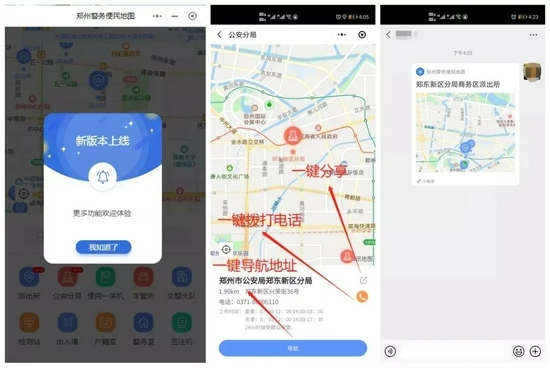 提醒:除了能查詢到距離自己最近的辦事處地址,“警務便民地圖”還能:一鍵撥打電話!一鍵導航地址!一鍵分享給好友!