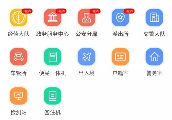 可以查詢到離您最近的經偵大隊、政務服務中心、公安分局、交警大隊、車管所、警務自助服務一體機、出入境大廳、派出所、戶籍室、警務室、簽注自助機。