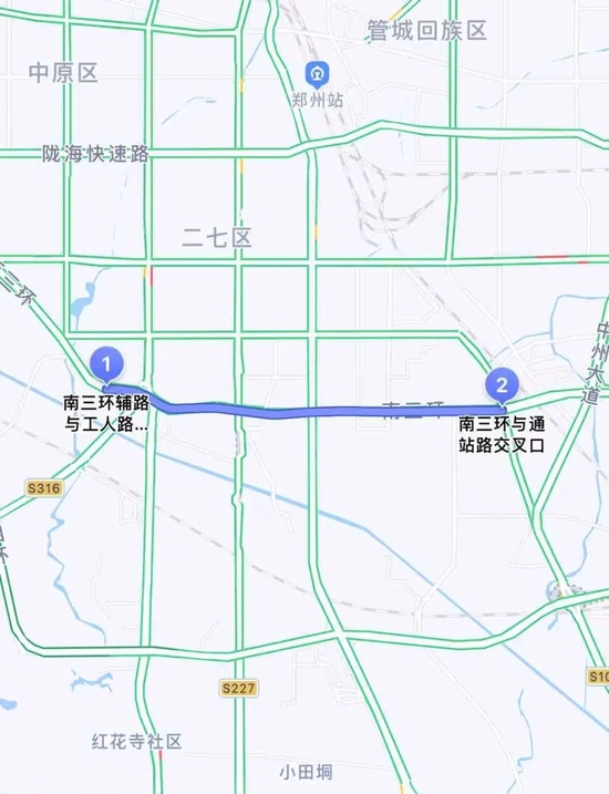 施工期間,由北向南車輛需行經南三環(鄭密路-通站路段)施工區域的提前繞行長江路;由南向北車輛行經南三環(鄭密路-通站路段)施工區域的提前繞行金海路、金沙江路、環翠路、漓江路。