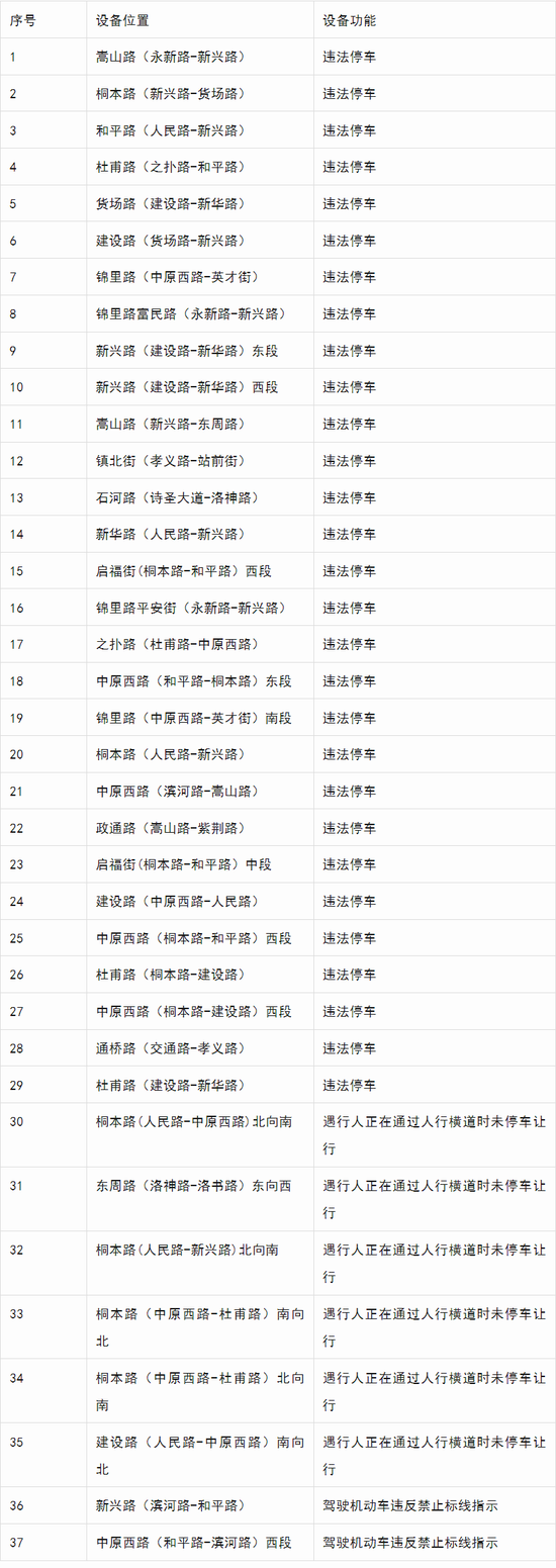 為進一步規范全市交通秩序,提升機動車駕駛人文明禮讓意識,保障廣大交通參與者的合法路權,營造安全文明有序的道路交通環境,根據《中華人民共和國道路交通安全法》等法律法規,經報請上級公安交管部門批準,鞏義市公安局交通管理警察大隊決定在鞏義市部分道路新增37處非現場執法取證設備,對“違法停車”、“遇行人正在通過人行橫道時未停車讓行”、 “駕駛機動車違反禁止標線指示”等交通違法行為進行取證、處罰。現將有關事項公示如下: