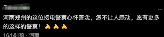 評論區里充滿了對楊先生家庭的鼓勵與祝福,更給鄭州交警人性化的執法方式和耐心態度點贊。“鄭州交警真的很捧,經歷過的都知道”“感謝鄭州交警,溫暖了這個冬天”“河南鄭州的這位接電警察心懷善念,怎不讓人感動,愿有更多的這樣的警察!”“有溫度的執法,不是為罰款而罰款!給鄭州交警點贊”……