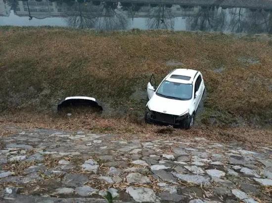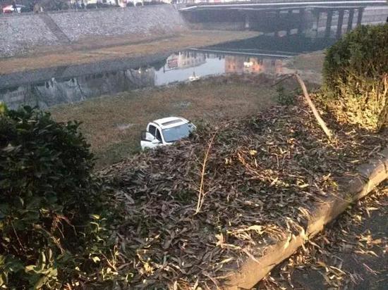 昨日下午四點(diǎn)半左右,在蟒河南街上,一輛suv沖出沿河路邊的綠化帶掉入了蟒河中。