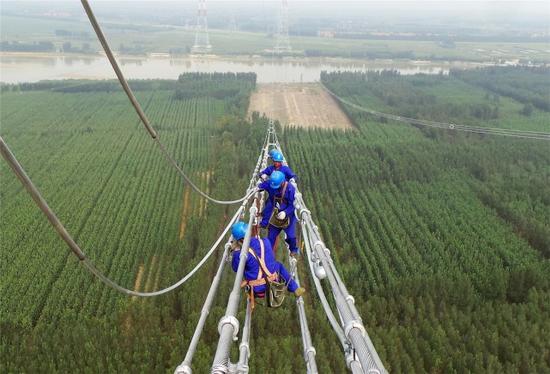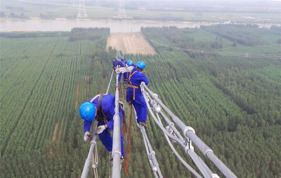 “一線飛架南北,天塹變通途”,國網河南送變電工程公司員工傾注近一年智慧和汗水,終于打通扎青特高壓工程跨越黃河的關鍵環節。黃河兩岸矗立的電力高塔,必將成為國網河南電力員工建設堅強電網、服務經濟發展的有力見證。