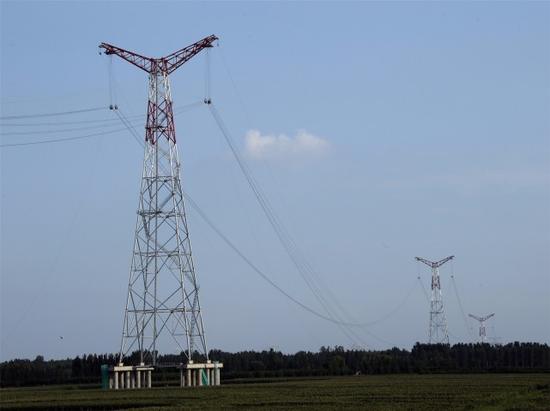 扎青特高壓直流工程導線分為正極、負極,專業術語稱之為“兩相”,黃跨段的每相由6根目前國內最大的1250平方毫米大截面導線組成,每根導線的直徑是47毫米。