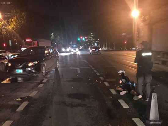 經調查,原來是一輛黑色越野車在從中原路由西向東,左轉向北上嵩山路時與一名騎自行車的行人相撞。3名特警見此狀況,迅速撥打了“110”、“120”,與此同時,對事故現場進行控制,責令肇事越野車司機出示駕駛證、行車證,并將車輛熄火、拔掉鑰匙、打開應急燈,為防止二次事故發生,特警從巡邏車拿出反光錐放置于事故現場及車輛后方。
