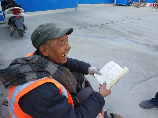 趙此會介紹,他來自河南禹州市農村,今年67歲,做環衛工兩年多了,現正在學習的是樂譜知識,一旁指導者是其老師,比自己年長一歲。趙此會說,年輕的時候,他在老家一工廠燒制瓷器,兒子在鄭州工作成家后,自己和老伴一起來照看孫子。“老伴和我一樣大,去年患病去世了,這對我打擊很大。“他說,相伴多年老伴去世,使其深深認識到,金錢都是身外物,只有好心情、好身體才是最主要的。一次偶然機會,他在掃地的時候,發現一位男士施工工地門口拉板胡,拉的十分好聽。