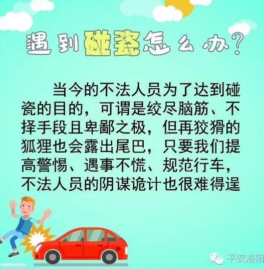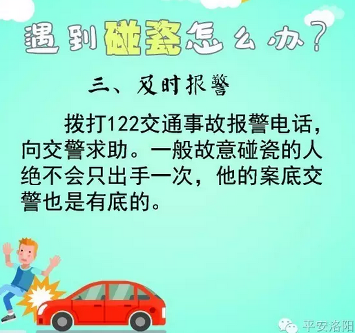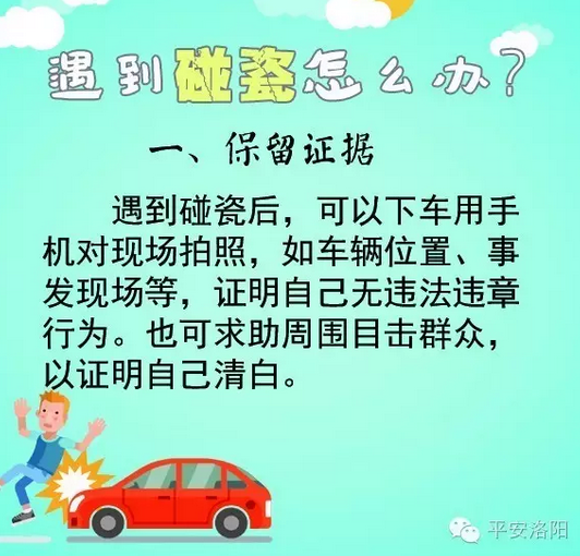 車站派出所民警提醒說,遇到此類“碰瓷”后,可先下車用手機對現場拍照保留證據;如果確定對方是“碰瓷”者,只要確認過錯不在自己,不能草率答應對方私了,一定要及時撥打122交通事故報警電話,向交警求助。