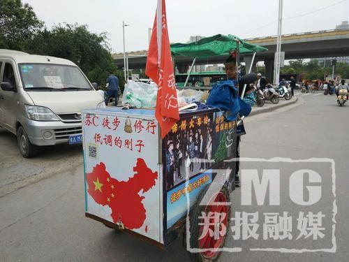 一名男子為了磨煉自己的意志,自造手推三輪車,要徒步全國。并且和一只撿來的小狗為伴,鄭州街頭不少市民為他的行為豎起了大拇指。