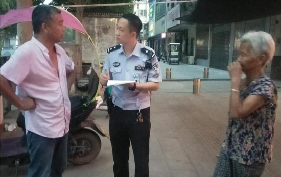 8月27日18時29分,中牟縣公安局巡特警大隊巡邏一隊民警李曉強(qiáng)、姚乾、姚紅星接110指揮中心指令:中牟縣官渡大街環(huán)保局門口有一名老人找不到家了。接到指令后,巡邏民警迅速趕到現(xiàn)場。