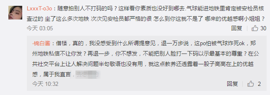 @LxxxT-o3o:隨意拍別人不打碼的嗎?這樣看你素質也沒好到哪去。氣球能進地鐵里肯定被安檢員核查過的,坐了這么多次地鐵,次次見安檢員都嚴格的狠,怎么到你這就不是了,哪來的優越感啊小姐姐?
