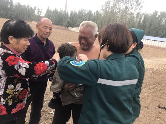 據悉,兩歲女孩被拉出機井后,雖然神志清醒,但全身衣服被井水浸濕,頭上、臉上、衣服上全都是泥水(如圖),被井水凍得渾身發抖,嘴唇、手臂發紫。家人為其換過衣服后,現場待命的醫護人員立即為女童檢查身體,確保無礙。“小女孩能夠成功獲救實屬萬幸,從事消防工作以來,由于墜井時間過長、報警不夠及時,造成不少人被救上來時已經停止了呼吸。”說起曾經的經歷,中隊長袁向陽感慨萬千。