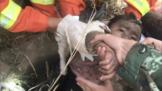 10月13日下午,在河南開封尉氏縣大橋鄉,兩歲女娃桐桐(化名)跟隨爺爺奶奶在田間澆水,不慎掉入井壁狹窄的深井中。萬幸的是,正好跌落到井下正在抽水澆地的水泵上,沒有沉入井水中。接到報警后,當地消防部門迅速趕到現場,其中一名消防員倒立入井,在狹窄的井壁中展開救援,20分鐘后成功將渾身是泥、全身發抖的女娃救出。
