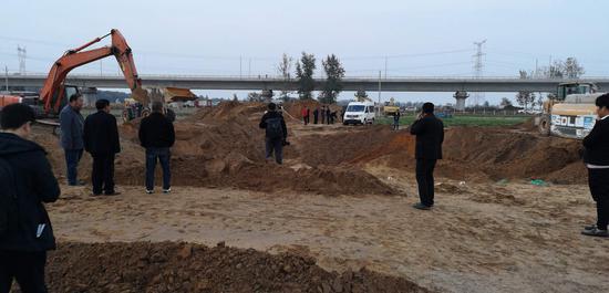 記者看到,現場找來了挖掘機,小男孩墜井周邊挖出了諾大的土坑。前去營救的消防員告訴記者,因為井太深,里面又有水,“小男孩沒了”。
