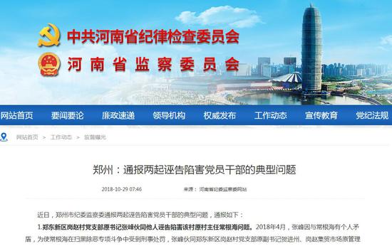 近日,鄭州市紀委監察委通報兩起誣告陷害黨員干部的典型問題,通報如下: