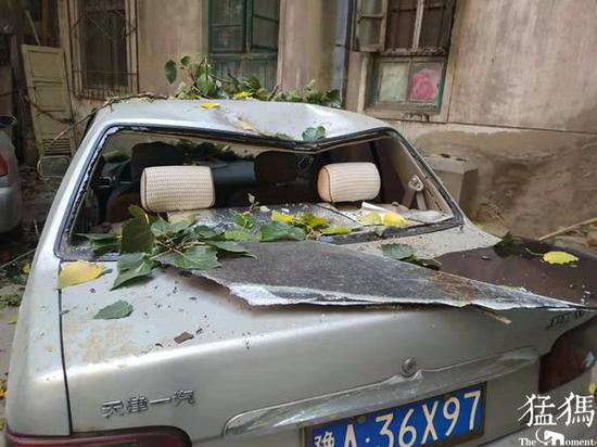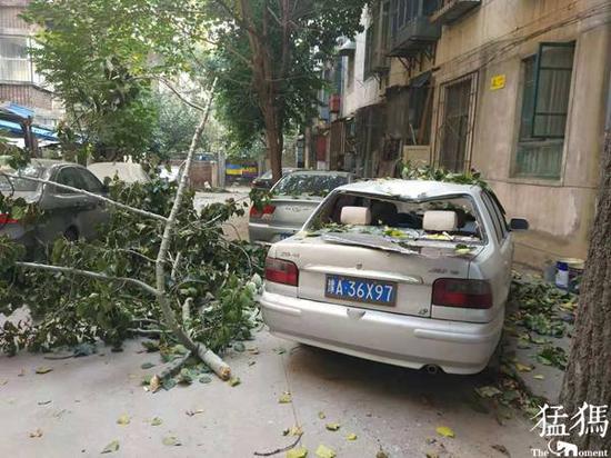 “那么大的樹枝硬生生砸在汽車上,就在門洞外,幸好沒有砸到人!”老人說,“不久前也是這棵楊樹掉下樹枝砸壞汽車,已經不是第一次了,院里種的楊樹都有30多年了,經常掉樹枝,但像這么大的也不多見,估計是前幾天大風刮斷的,但當時沒有掉下來,結果風停了,它又突然落了下來!太危險了!”