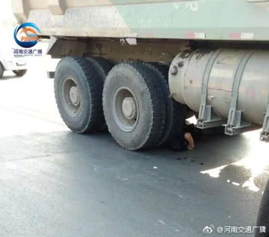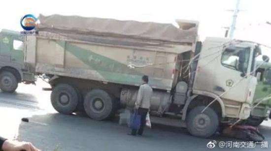 今天(10月30日)下午3點多,鄭州經北二路第八大街十字路口,一輛渣土車與一輛電動車相撞,從車友提供的現場圖片看:紅色電動車倒在渣土車車頭前方,電動車司機被卷入車輪下,目前120以及交警已經趕到現場救援。行駛在路上,一定慢慢慢!