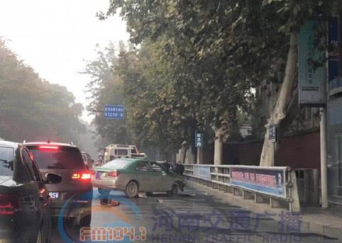 [清晨鄭州一輛出租車和私家車事故,出租車車牌“搶眼”]今天(11月13日)早上7點左右,記者朱浩:金水路經五路東向西兩車事故,造成后方排隊,出租車無法啟動,目前現場正在拖車。