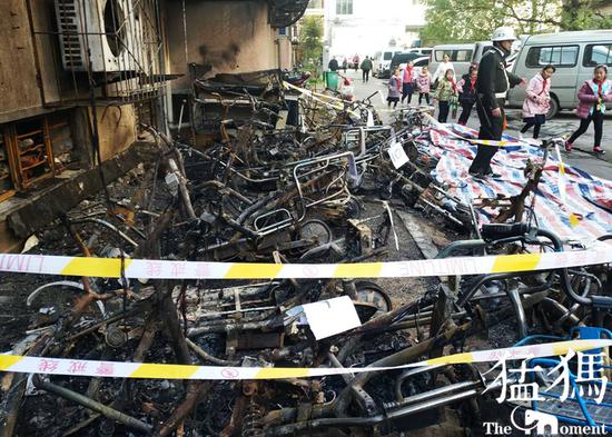 11月18日,鄭州市文化宮路淮河路附近一處小區(qū)居民樓下,13輛電動車和3輛自行車被一場大火燒得只剩下金屬骨架,同時在3米開外停靠的兩輛汽車也遭大火熏燒被損壞。